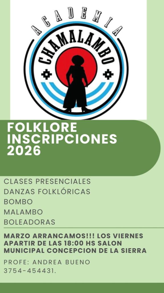 En la localidad de Concepción de la Sierra, la Academia Chamalambo abrió las inscripciones para sus clases presenciales de danzas folklóricas, que abarcan disciplinas como folklore tradicional, bombo, malambo y boleadoras.