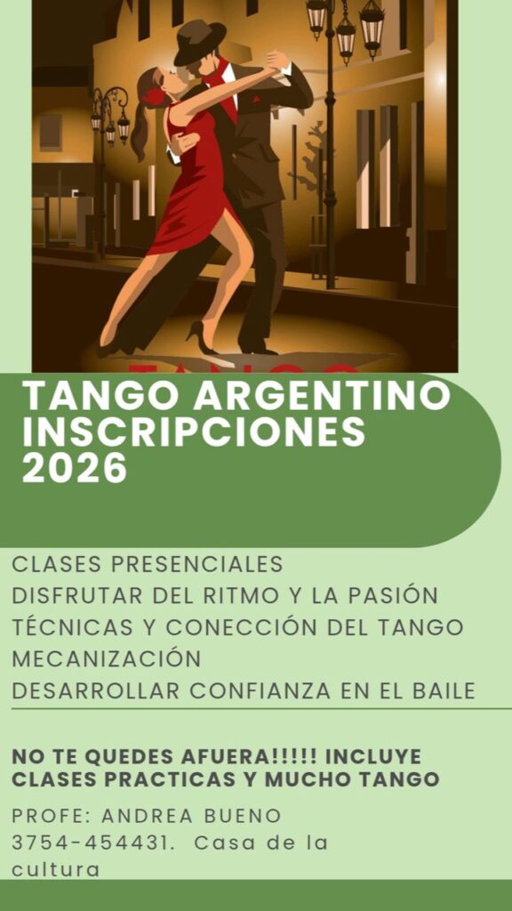 Además, se encuentran abiertas las inscripciones para las clases de Tango Argentino 2026, una propuesta que invita a disfrutar del ritmo y la pasión de esta danza tradicional, trabajando aspectos como técnica, mecanización, conexión en pareja y desarrollo de la confianza en el baile.